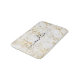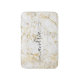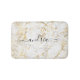 Classy white and gold marble bath mat with black script name.