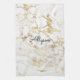 White & Gold Marble, Black Script Name or Monogram Kitchen Towel