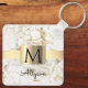 White & Gold Marble Gold Box, Black Name Monogram Keychain