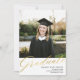 This photo graduation announcement features a modern calligraphy "graduate" greeting in faux gold foil with a white background. The backer is the same colour. This simple yet fun design really allows your photo to shine by keeping the details minimal while the greeting sets the festive tone. Tip: you can easily add more text or an additional photo to the back.