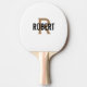 Modern ping pong paddle with a simple white background, a modern golden monogram and a black typography name. Personalize with your name and monogram.