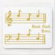 Unique design for a Dad who likes music - both to listen to or play. This design features a musical score with treble and bass clef staves. There are three notes on each - D, A, and D again. A great design for a special Father, Dad or Papa for birthdays, Fathers Day, Christmas, or just because. There is custom text which reads' "Best Dad Ever" but can be personalized to whatever custom message suits best. The music notes are in a gold colour against a white colour.