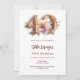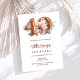 A modern, stylish and glamourous invitation for a 40th birthday. White background, decorated with a peach and purple watercolored flower. The name is written with a modern hand lettered style script. Personalize and add your party details. Number 40 is written with a balloon style font, script.