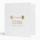 A chic and modern binder for your fitness plans featuring a faux gold fitness weight icon, "fitness planner" and your name, also in gold on a white background.