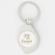 White & Gold Script Just got Engaged Keychain