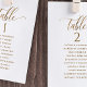 Help your guests find their table with this elegant modern seating plan cards with guests names. Double sided cards so guests can look from both, front or back for their names. Clear space all around giving you the liberty to use clips or punch hole for hanging displays, or use table holder. White background and text in gold. Modern hand written calligraphy details. Part of our "Elegant Calligraphy Wedding Stationery" collection. Visit the entire collection at: https://www.zazzle.com/collections/elegant_calligraphy_minimalist_wedding_stationery-119497981924462546