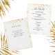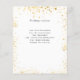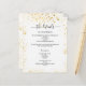 A modern, elegant wedding details/program/timeline. A white background decorated with faux gold glitter, sparkles. Personalize and add your names and wedding details. Black coloured letters.