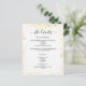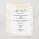 A modern, elegant wedding details/program/timeline. A white background decorated with faux gold glitter, sparkles. Personalize and add your names and wedding details. Black coloured letters.