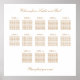 An elegant seating chart poster featuring stylish text in a golden shade of beige on traditional classic white. Please personalize the names of the couple and the names of the guests along with any of the other text that you may wish to personalize.