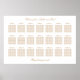 An elegant seating chart poster featuring stylish text in a golden shade of beige on traditional classic white. Please personalize the names of the couple and the names of the guests along with any of the other text that you may wish to personalize.
