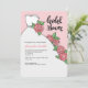 A bridal shower invitation featuring a full-skirt, white gown with pink cabbage roses as accents. (<a href='http://www.freepik.com/free-vector/hand-drawn-bachelorette-invitation-with-wedding-dress-and-flowers_1069816.htm'>Designed by Freepik</a>). <br/><br/>The card is easy to customize with your wording, font, font colour, paper shape options and choice of six paper types.<br/><br/>Not exactly what you're looking for? All our products can be custom designed to meet your needs at no extra charge.<br/><br/>Simply contact us at heartfelthelper@gmail.com<br/><br/>Coordinating products available: Just ask us!