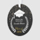 Graduation ornament gift for that special high school or college grad with custom front and back text. Features image of a white grad cap and laurel wreath printed on sturdy acrylic. Accented with faux gold confetti. Red, blue and other cap colors also available in this same design