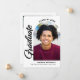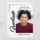 Be proud, rejoice and showcase this milestone of your favourite grad! Send out this stunning, simple, modern, personalized 4 photo announcement for an event to remember. On the front, bold, graphic, black handwritten script calligraphy, sans serif typography and a photo of your choice in an arch overlay a minimal white background. On the back, 3 additional custom photos and your personalized note overlay white. Personalize the custom text with your grad’s name, school and class year. On the back, add 3 more photos and your personal note of the next school they’re attending, their degree, – or whatever else you want to share. Matching invites, thank you cards, cap toppers, napkins, plates and other graduation goodies are also available in this trendy and stylish collection. Guaranteed to add stylish fun to their special occasion!