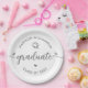 White Graduation Gray Script Hearts Cap Fun Modern Paper Plate