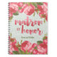 Vintage white and pale green lace matron-of-honour spiral notebook with pink roses and calligraphy. Personalized.