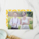Stylish photo thank you card featuring white hand lettered calligraphy with yellow ikat diamonds pattern. This flat card will be perfect as wedding thank you card or graduation thank you card. You can customize the photo, texts, and back pattern. A postcard version is also available.