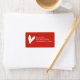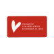 This address label features a white heart with your name and address to the right. The red background colour can be changed using the customization tool.