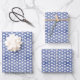 White Hearts on Dark Blue Linen Wrapping Paper Sheet