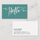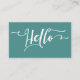 This simple, friendly card features the word "Hello" on the front. It has been rendered here in a beautiful, modern script font, with swirling embellishments, in bold white. The background of the front was set to editable teal, which you can change to any colour you prefer | Your personal details appear on the back. I've set up template fields for your name, phone number, email address, and there's one additional line for whatever else you'd like to include. Of course you can make further changes, too! Whereas just filling in the template fields will render your details in black, in a versatile serif font, left and bottom-aligned, should you wish to make even more updates, simply click the link for further customization and you can change the font, size, its colour, the background colour, and the positions of the words. You can also use this option for placing additional text fields on the card, should you need to include more personal information. Please let me know if you need help with anything!