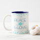 White Holiday Turquoise Snowflake Peace Joy Love Two-Tone Coffee Mug