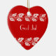Festive design in red and white with white hollies . It comes with the text " God Jul" - it means Merry Xmas in Swedish and in other Scandinavian languages as well .You can customize it now with your own text . Heart shaped ceramic ornament . Front and back design .