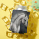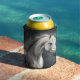 A white horse with flowing mane can cooler. A great cozy for your drink!