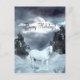 White horse in a snowy background nondenominational holiday Christmas postcard. Text can be easily changed or removed