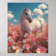 A serene portrait of a white horse standing calmly in a vibrant field of pink and white blossoms beneath a bright blue sky. The flowing mane and gentle stance evoke a sense of quiet nobility, while the burst of floral color creates a dreamy, almost fairytale atmosphere. This piece celebrates the peaceful harmony between animal and nature and is perfect for home decor, nursery art, or anyone who loves equine beauty and floral landscapes.