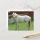 The White Horse Postcard is A white horse standing in front of a fence and red barn