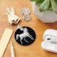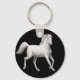 Design of a trotting white horse by Carolyn McFann of Two Purring Cats Studio on a keychain for equine fans.