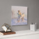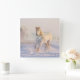 Wall clock with the photo of a white horse running through the snow.