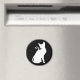 White on black silhouette of a cute house cat.