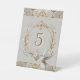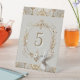 Elevate your reception décor with the White Hummingbird Collection Formal Table Number Pedestal Sign. This exquisite design features ornate gold filigree, intricate white floral details, and pearl embellishments, creating a luxurious and sophisticated aesthetic. A graceful white hummingbird adds a symbolic and elegant touch, enhancing the timeless charm of your wedding tablescape. The soft neutral background ensures seamless integration with your wedding décor, making each table setting look effortlessly refined. This design includes a digitally edited AI image, ensuring a unique and artistic touch.