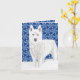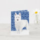 White Husky against Snow Flakes and dark blue sky Card