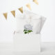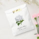 Elegant white favour bag with lovely artwork of a white hydrangea. Personalize the black custom text for wedding event. Great for candy and sweets bars.