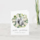 Summery garden chic wedding thank you cards feature a wreath of white watercolor hydrangea flowers and lush green leaves, encircling your favourite wedding photo. "With gratitude" appears beneath in elegant calligraphy script lettering. Personalize the front with your names and add an optional pre-printed inside message.