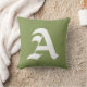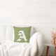 White Initial Monogram on Olive Green Minimalist Throw Pillow