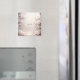 It was a bit smaller than expected, but I was too excited to check dimensions. The product itself send well printed though the grey text is a bit paint. Magnet worked perfectly on my fridge.