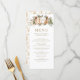 Amaze your guests with this elegant menu card featuring beautiful flowers and rustic pine leaves.