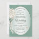 White Jasmine Floral Green Geometric Wedding Invitation. Unique, beautiful, modern design. Easy to be personalized. Font style, size and colors can be changed. Matching items available.