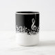 White Jumbled Musical Notes on Black Two-Tone Coffee Mug