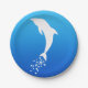 White Jumping Dolphin With Bubbles cute white dolphin silhouette preparing to jump from the water on gradient blue sea background