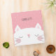 Pink binder with a white cat with a pink nose and cute pink freckles against a pink background with white dots. Add your child's name!