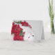 White long haired, blue eyed kitty cat, possibly a turkish angora, plays in the Christmas decorations in this photo Christmas greeting card