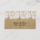 White lace and pearls on linen coloured burlap business card