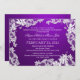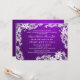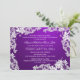 White floral lace design over a purple background personalize wedding invitation as preferred.
