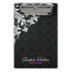 Elegant white floral lace swirls over black floral damasks pattern. For Event designers, wedding planners