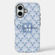 White Lace Damask on Dusty Blue Monogram & Name Case-Mate iPhone Case