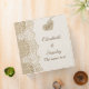 White lace and cardboard heart with initials on burlap wedding planner/organizer binder featuring white lace on linen natural burlap or hessian and a heart made of cardboard with initials. Text in brown. Note that lace, cardboard and burlap are all “printed on” and not real materials. This elegant, sophisticated and romantic design with a rustic essence is part of a wedding set and is perfect for a country chic or western spring, summer or fall/autumn wedding with a neutral colour palette. Also it can be used as a bridal shower gift for recipes.