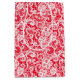 Elegant white lace design on red background.